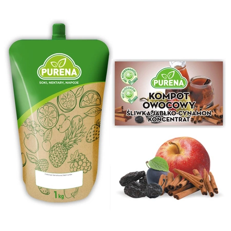 Koncentrat bazuje na zagęszczonych sokach owocowych: jabłkowym, śliwkowym i z suszonych śliwek, z dodatkiem ekstraktu cynamonu i naturalnych aromatów. Smak jest bogaty, słodko-korzenny z lekko kwaskowym akcentem – jak domowy kompot serwowany na świątecznym stole.